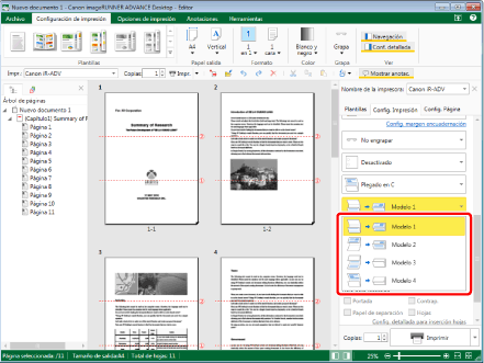 Esta función solo se puede utilizar si selecciona una impresora Canon y la casilla [Usar conf. impr. de Editor] en la pestaña [Config. Impresión] de la Ventana Detalles, el comando de la cinta o el botón de herramienta.