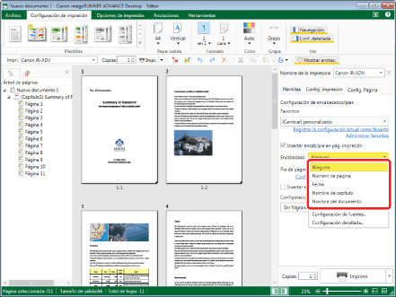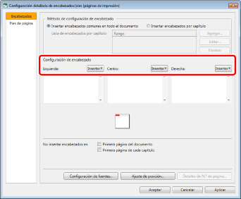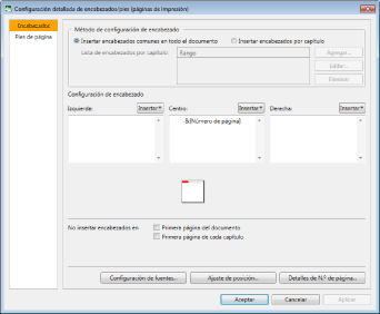 Para obtener información acerca de la configuración detallada de los encabezados/pies de página, consulte la siguiente sección.