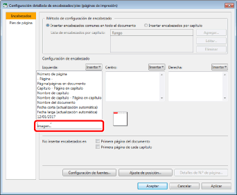 Se puede establecer una imagen para cada posición de inserción del encabezado o pie de página.