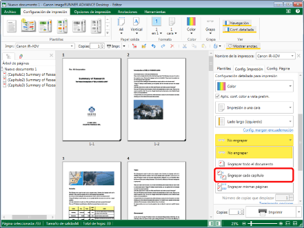 Esta función solo se puede utilizar si selecciona una impresora Canon y la casilla [Usar conf. impr. de Editor] en la pestaña [Config. Impresión] de la Ventana Detalles, el comando de la cinta o el botón de herramienta.
