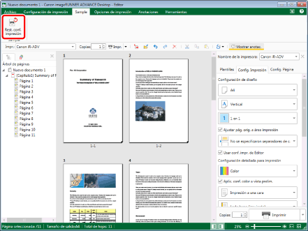 Al restablecer los ajustes de impresión, los ajustes de impresión cambian a los siguientes estados tras aplicar los ajustes [Igual que el original] a la plantilla de ajustes de impresión.