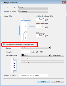 Para obtener más información sobre cómo imprimir nombres de capítulo en separadores de índice, consulte: