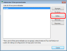 También puede mostrar [Administrar fichas personalizadas] desde el menú [Archivo] > [Configuración/Administración] > [Administrar fichas personalizadas].