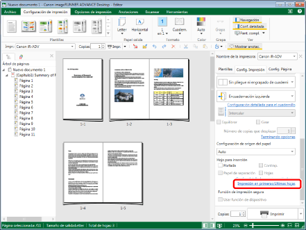 Si ha establecido la impresión en la primera/última página, se insertará entre las páginas una página en blanco de forma automática por lo que el número total de páginas puede variar.