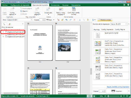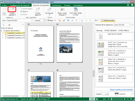 Haga clic en [Aplicar] para comprobar la vista preliminar del documento en la Ventana de trabajo sin cerrar [Configuración del capítulo].