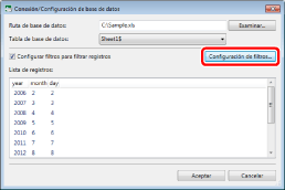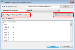 También puede deshabilitar un filtro desmarcando la casilla de verificación de [Configurar filtros para filtrar registros] en [Conexión/Configuración de base de datos].