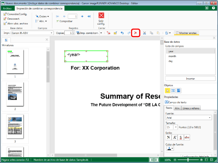 Si desea seleccionar todos los campos de Combinación de correspondencia de la página, realice una de las siguientes operaciones en un área de la Ventana de trabajo sin un campo de Combinación de correspondencia mientras mantiene activa la Ventana de trabajo.