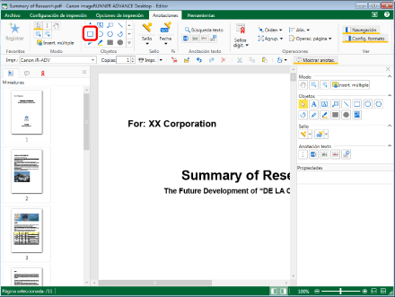Esta operación también se puede realizar con los botones de herramienta. Si estos botones no aparecen en la barra de herramientas de Desktop Editor, siga estas indicaciones para visualizarlos.