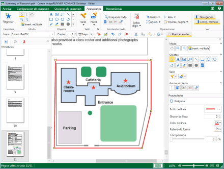 Si se ha seleccionado [Nube (pequeña)] o [Nube (grande)] en [Estilo de línea], las líneas sólidas aparecen para el marco de la anotación al mover un vértice.