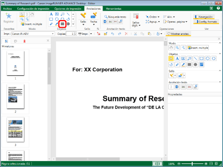 Esta operación también se puede realizar con los botones de herramienta. Si estos botones no aparecen en la barra de herramientas de Desktop Editor, siga estas indicaciones para visualizarlos.