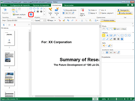 Esta operación también se puede realizar con los botones de herramienta. Si estos botones no aparecen en la barra de herramientas de Desktop Editor, siga estas indicaciones para visualizarlos.