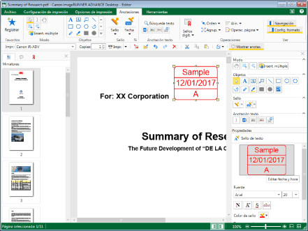 También puede insertar sellos de texto/sellos de fecha varias veces. Para obtener más información, consulte: