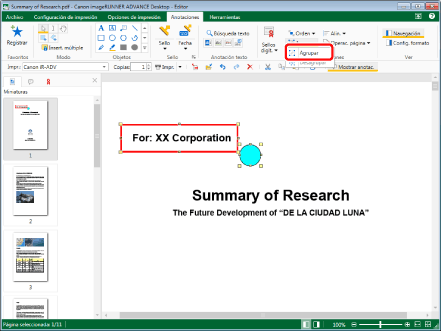 Puede crear grupos de grupos o agrupar un grupo con una sola anotación. Cuando agrupe dos grupos, se desharán sus agrupaciones previas y se reagruparán como un solo grupo.