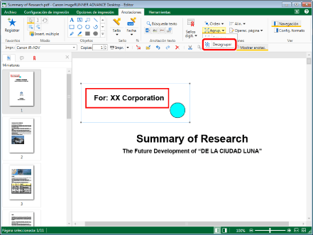 Es posible que no se puedan desagrupar algunas anotaciones que no se han agrupado con Desktop Editor.