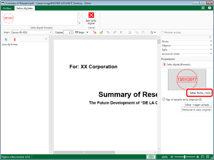 No puede hacer clic en [Editar fecha y hora] para un sello digital que no contenga una fecha. Para obtener más información sobre cómo añadir una fecha a un sello digital, consulte: