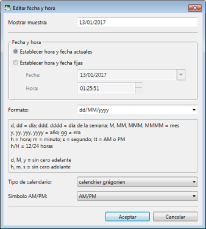 Configure la hora que desee insertar. Seleccione [Establecer hora y fecha actuales] o [Establecer hora y fecha fijas].