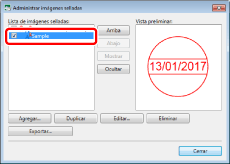 No se pueden editar las imágenes con sello que se registraron automáticamente durante la instalación. Sin embargo, puede editar las imágenes con sello duplicadas a partir de ellas. Para obtener más información sobre cómo duplicar imágenes con sello, consulte: