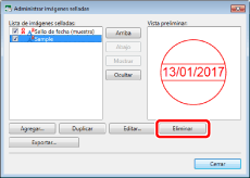 No se pueden borrar las imágenes con sello predeterminadas y registradas automáticamente durante la instalación.
