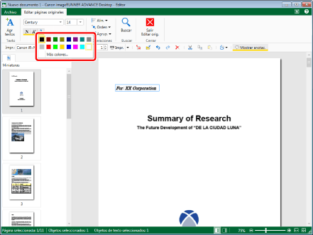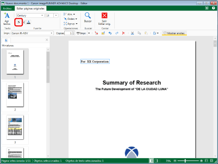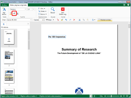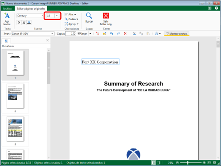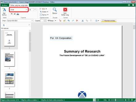En el Modo de edición de páginas originales de Desktop Editor, puede establecer la fuente para los objetos de texto.