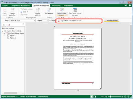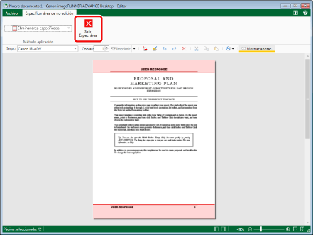 Las áreas en las que no se puede realizar la edición no se pueden establecer por página. Se establecen por documento.