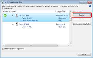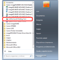 Para Windows 10, seleccione el menú [Inicio] > [Canon imageRUNNER ADVANCE Desktop] > [List for Quick Printing Tool]. Se iniciará la List.