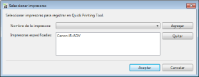 Añade el dispositivo seleccionado en [Nombre de la impresora] a [Impresoras especificadas].