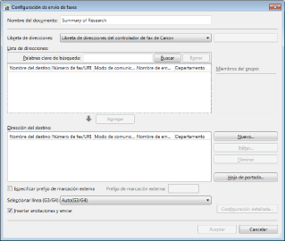 Si soltó varios documentos en [Fax] con la casilla [Enviar por fax un archivo a la vez sin combinar múltiples archivos] seleccionada, se mostrará la [Configuración de envío de faxes] del siguiente documento. En este caso, repita los pasos del 6 al 12.