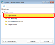 La carpeta/condición de búsqueda de una Biblioteca de Therefore seleccionada se añade a la [Lista de carpetas monitoreadas].