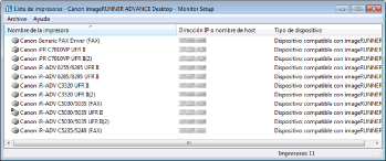 Para Windows 7, haga clic en el menú [Iniciar] > [Todos los programas] > [Canon imageRUNNER ADVANCE Desktop] > [imageRUNNER ADVANCE Desktop Printer Monitor]