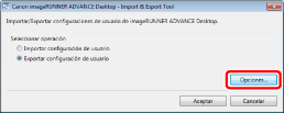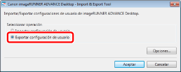 Para Windows 10, seleccione el menú [Inicio] > [Canon imageRUNNER ADVANCE Desktop] > [imageRUNNER ADVANCE Desktop Import & Export Tool].