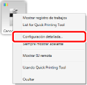 Haga clic con el botón derecho del ratón en la herramienta Quick Printing Tool en la que están registrados los dispositivos para supervisar y seleccione [Configuración detallada].