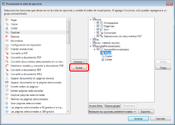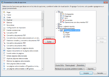 Seleccione la pestaña o grupo para eliminar de la lista de la derecha.