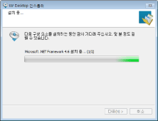 ![]() Desktop 작동을 위해 필요한 .NET Framework가 컴퓨터에 설치되어 있지 않은 경우 위 화면과 다른 화면이 표시되고 자동으로 설치됩니다.