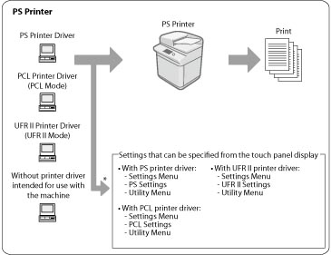Differences in Operation with UFR II, PCL, PS, and Direct Print Printers