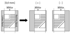Wenn Sie einen höheren Wert eingeben, bewegen Sie das Bild in x-Richtung nach rechts auf dem Papier. Wenn Sie einen niedrigeren Wert eingeben, bewegen Sie das Bild in x-Richtung nach links auf dem Papier.
