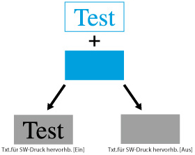 [Modus 3]: | Zeichen und Linien in dunklen Farben auf einem Halbtonhintergrund werden beim Drucken geglättet. Wählen Sie [Modus 3], wenn bei großen Zeichen und Halbtönen innerhalb von dicken Linien in dunklen Farben Passerfehler auftreten oder wenn die Kanten von Zeichen und Linien in hellen Farben ungleichmäßig sind und sie beim Drucken mit der Einstellung [Modus 1] nicht glatt aussehen. |