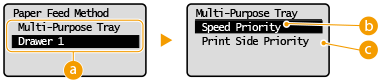 <Multi-Purpose Tray> <Speed Priority>  <Print Side Priority> <Drawer 1> <Speed Priority>  <Print Side Priority> |