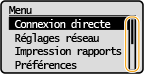 Vous pouvez modifier un grand nombre de réglages relatifs à l'affichage tels que la vitesse de défilement ou la langue d'affichage : <Réglages d'affichage> |