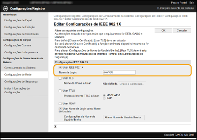 Marque a caixa de seleção [Usar IEEE 802.1X] e insira o nome do login na caixa de texto [Nome de Login].