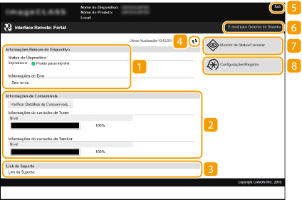 Quando você acessa a Interface Remota, a seguinte página do Portal aparece. Esta seção descreve os itens exibidos na página do Portal e as operações básicas.