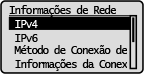 Exibe as definições de rede como, por exemplo, o endereço IP da máquina, e status como, por exemplo, as condições das comunicações LAN sem fio.