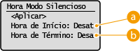 Especifique um horário para sair do modo silencioso. Para configurar, selecione <Ativado> e especifique o horário.