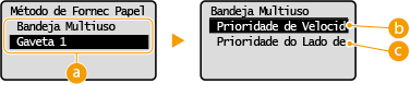 Papel disponível), <Prioridade de Velocidade> é aplicada à fonte de papel. Neste não, é necessário carregar o papel da mesma maneira que quando <Prioridade de Velocidade> estiver selecionado (