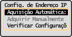 Atribuindo automaticamente um endereço IP1 | Selecione <Aquisição Automática>. |