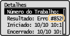 Se ocorre um erro tal como quando a impressão não é bem sucedida, o código de erro correspondente é exibido na tela de log de trabalhos como um número de três dígitos. Verifique o seguinte para descobrir as causas e soluções de cada código de erro. Para imprimir um relatório de erro e informação, consulte