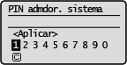2 | Introduzca el nombre del administrador del sistema y seleccione <Aplicar>. Para obtener información sobre cómo introducir el texto, consulte Introducción de texto. |