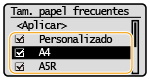 Asegúrese de que únicamente estén marcadas las casillas de verificación de los tamaños de papel utilizados frecuentemente.