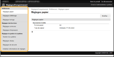 Vous ne pouvez modifier certains réglages que si vous êtes connecté en Mode administrateur système.