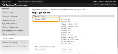 Cliquez sur [Réglages/Enregistrement] sur la page du portail.