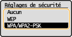 clé WEP (1 à 4).Il est possible d'enregistrer jusqu'à quatre clés WEP.